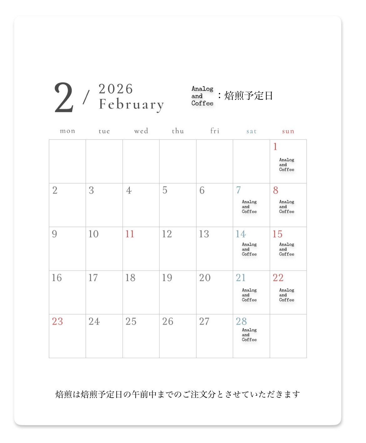 Analog and Coffee 2024.11.022026.02.02 NewsColumnAboutContactPrivacy-PolicynoteOnline Store ↑↑Online Storeはこちらから ↑↑ 今月の焙煎予定日はこちら News 【新商品のお知らせ】インドネシア マンデリン バタックブルー 2026.02.04 【新商品のお知らせ】エチオピア モカ ゲイシャ G-3 ナチュラル 2026.01.212026.02.04 焙煎予定日カレンダーをHPとストアページに公開しました 2026.01.20 2026年もよろしくお願いします 2026.01.07 【最大20%OFF SALE】コロンビア ナリーニョ 2025.11.21 News一覧はこちら Column スペシャリティコーヒー”ゲイシャ”について 2026.01.27 セブンイレブンで販売!世界初の「水素焙煎コーヒー」とは 2025.11.03 コーヒー栽培の標高は味にどう変化があるのか? 2025.06.22 YOUTUBEにDJ MIX動画を投稿してみました 2025.06.11 誰でも「レコードショップ」が始められるかも? 2025.05.282025.05.30 Column一覧はこちら Category ↓↓Instagramで珈琲の最新情報をお届けしています!↓↓