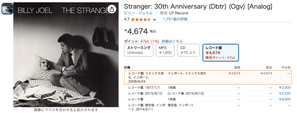 是非安く手に入るレコードの温かみのある音でBilly Joelに浸ってください。