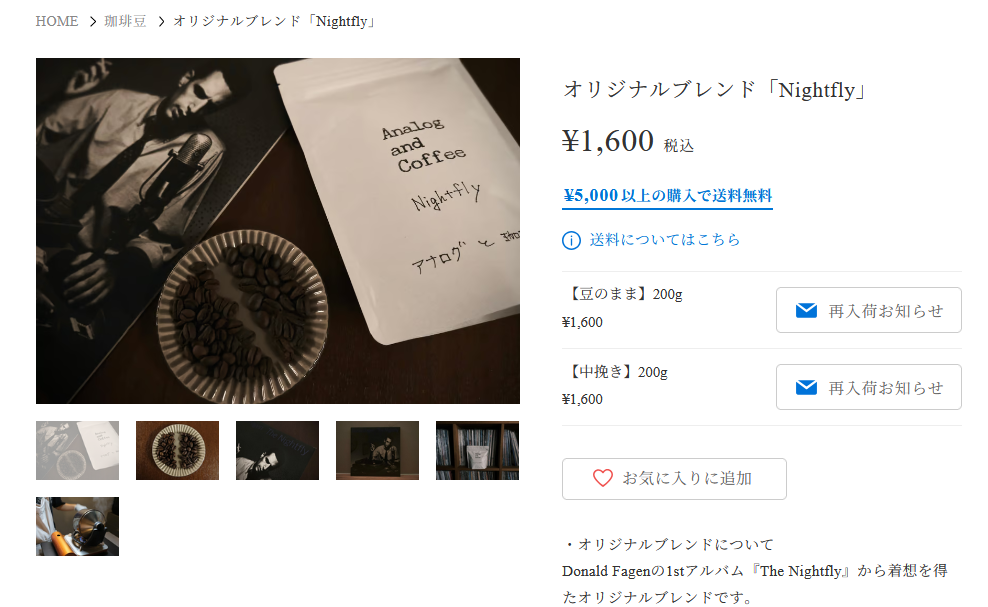 おかげさまでオリジナルブレンド”Nightfly”が売り切れとなりました。